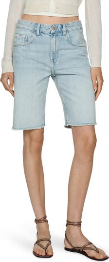 Straight-fit Bermuda shorts made from nonstretch denim with frayed hems and a faded finish offer a comfy, flattering fit.