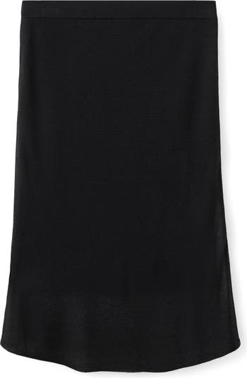 Ribbed in a fine gauge and topped with a comfy concealed elastic waist, this knit skirt will be a favorite staple.