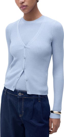 Build out your collection of capsule-wardrobe essentials with this classic ribbed-to-fit cardigan knit from lightweight, linen-kissed yarns.