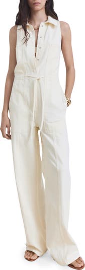 Amp up your casual-cool game in this nonstretch denim jumpsuit fitted with plenty of pockets for a utilitarian vibe and punctuated with leg-elongating wide hems.