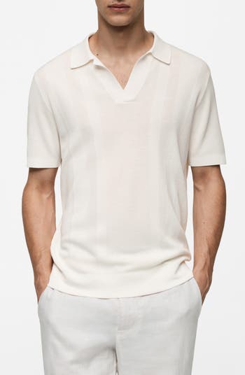 A subtle rib knit creates a tonal striped effect on this soft, lightweight johnny-collar polo.