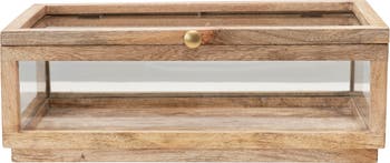 Mango Wood and Glass Display Box with Lid, Clear