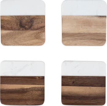 Mixed materials elevate these coasters to attractive accent pieces in their own right. The set of four is crafted from smooth marble and natural acacia wood.