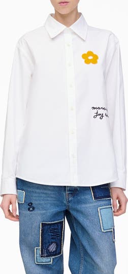 Iconic Marc Jacobs daisies in velvety flocking bring flower-powered fun to this crisp poplin shirt from the brand s Joy series, a capsule collection that celebrates life s big and little delights—including a chance to stop and smell the flowers.
