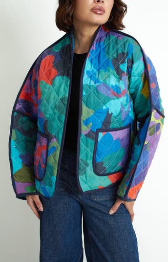 Description: The Marcia Jacket is a reversible quilted piece designed for comfort and versatility. Made from renewed materials, it highlights a focus on conscious creation and careful construction. One side presents a unique design, while the other shows a vivid composition, both finished with a light or warm edge tone for subtle variation. With its smooth texture and relaxed fit, this jacket provides warmth and ease for everyday wear.