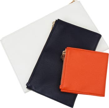 A new classic is born with Maria. Pure sophistication with clean lines and just the right amount of detail. Maria is for the traveller in love with cities they’ve never been to, and people they’ve never met. Set of three double zip jewellery pouches in different colours: spacious white, charming navy and petite tangerine. This set offers unparalleled convenience, perfectly suited for your adventures or everyday life, ensuring your treasured jewellery and accessories are perfectly safeguarded. Each pouch has 2 exterior and 2 interior zipped pockets, all featuring WOLF’s patented LusterLoc™ lining. The medium size has an additional mini square snap-close pouch inside the pocket. The large boasts the same mini snap-close pouch plus a removable jewellery panel with earring strap, 2 ring rolls and 6 necklace//bracelet hooks. Use on their own or inside your favourite handbag to keep super organised on your travels.