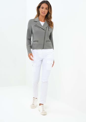 Anatomie Marina Performance Twill Biker Jacket, Alternate, color, Grey