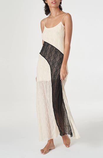 Sweeten the occasion in this slinky two-tone mesh slipdress made with soft texture and finished with a perfectly draped skirt.