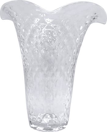 Pineapple-inspired texture captures the light on a handblown glass vase with waved edges that allow for a variety of floral arrangements.