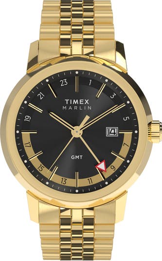 An elegant tribute to midcentury modern style, this GMT watch from the brand s iconic 60s-inspired Marlin collection gleams as brightly as the dawning of the era it emulates in polished stainless steel.