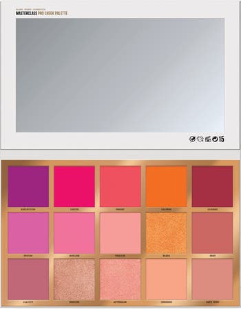 .The Masterclass Pro Cheek Palette includes 15 individually designed shades that work on a wide variety of skin tones. All 12 buttery mattes, 1 brilliant luster, and 2 satiny blushlights are optimized to be worn alone or layered for multi-dimensional effects. Created by pro makeup artist jordan liberty, inspired by his global makeup, masterclasses, each of the 15 Pro Cheek Colors are richly pigmented and allow for effortless versatility, from natural looks to high level artistry depending on the brush used and pressure applied during application. Magnetic pans allow for depotting and customization.Shades:Exhibition - Matte Rich Violet (Resurrected Shade from the Juicy Cheeks Palette)Ignite - Matte Saturated Magenta Pink.Thrust - Matte Deep Coral.Caldera - Matte Intense Mandarin.Disobey - Matte Sangria Red.Fetish - Matte Bold Orchid Pink (Resurrected Shade from the Juicy Cheeks Palette)Hotline - Matte Azalea Pink.Tension - Matte Bright Coral Pink.Blaze - Golden Orange Blushlight.Heat - Matte Pinkish Brown.Illicit - Matte Mauve Rose.Heroine - Palladium Rose Taupe Luster.Afterglow - Golden Pink Blushlight.Innuendo - Matte Light Peach.Safe Word - Matte Muted Peachy Pink.