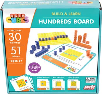 MATHCUBES: HUNDREDS BOARD - Junior Learning - The Hundreds Board set invites learners to explore various mathematical concepts in an innovative way. Combining tactile beads with thought-provoking activities, math has never been so accessible. Visualize number connections like never before with our Mathcubes and innovative hinge design. The vibrant colors and innovative design not only appeal to the eye but also make abstract concepts tangible and easier to grasp. 15 double-sided activity cards combining 30 progressively challenging activities along with visual guides and step-by-step instructions. Carefully designed to stimulate learners’ minds, our unique sets cater to a wide array of mathematical concepts. From nurturing the foundation of number recognition with Number Bonds and Number Lines, to unveiling the beauty of geometric concepts with Shape, Length, Area, and Angles, this range has something for everyone.