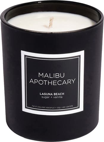 8oz travel-inspired, scented candle made with all-natural Coconut Soy Wax and Cotton Wick in a recyclable matte black vessel. Scent Notes: Montauk: with notes of Tonka Bean and Oud. Malibu Beach: with notes of Mahogany and Teakwood. Laguna Beach: with notes of Sugar and Coconut. Cap-D Ail: with notes of Jasmine, Amber, and Mandarin. Turks Caicos: with notes of Grapefruit.