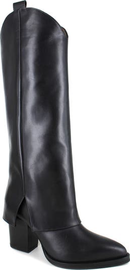 A curved topline underscores the Western inspiration behind this Italian-made leather boot boosted by a block heel.