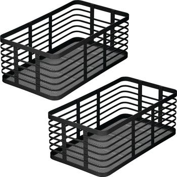 Go from a pantry full of frustration to one that s practical and functional with our good-looking Carson Wire Baskets. Sleek and highly versatile, this solution corrals small seasoning jars, snacks, or boxed foods, so you never lose anything to the back of the pantry again. The open wire construction provides ventilation for storing fruits and vegetables and easy visibility to quickly inventory items without rummaging. Crafted from durable metal with integrated handles, these baskets transport easily and make a darling display when moved from the pantry to the kitchen table. This elevated catchall creates a frustration-free kitchen space so you can quickly grab what you need and focus on the task at hand-whipping up something delicious.