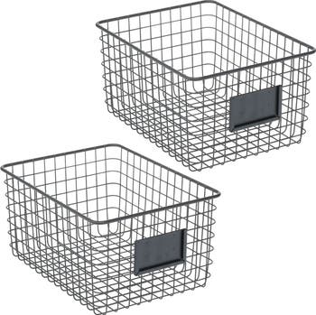 Enjoy quick access to your preferred ingredients with the Metal Pantry Basket, turning recipe card favorites into culinary delights. Sleek and highly versatile, this solution corrals small seasoning jars, snacks, or boxed foods so you never lose anything to the back of the pantry again. The flat, open wire design offers instant visibility and provides proper ventilation if storing fruits and vegetables. A built-in label slot with lipped edges firmly holds a label card in place for custom storage. Crafted from durable metal, these baskets transport easily and make a darling display when moved from the pantry to the kitchen table.
