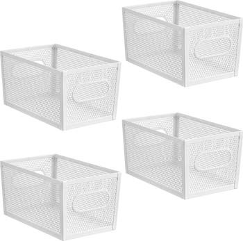 - EASY ORGANIZATION - The Perforated Metal Bin corrals everything from pantry staples to personal care items, and the easy-grip carry handles create a portable, on-the-go storage solution.