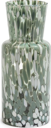Rolled in colorful crushed glass midproduction, this artful vase looks stunning with long-stemmed flowers or on its own as a décor piece.