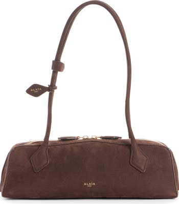 This suede shoulder bag made in Italy features an elongated East/West silhouette and gets its fitting name after the French word for the Dachshund dog breed.