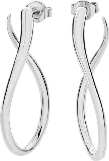 These stunning twisted hoop earrings, crafted in high-quality sterling silver, are a perfect addition to any jewellery collection. Featured in Lucy s iconic Drop collection, these earrings combine classic elegance with a modern twist, making them ideal for everyday wear. The sleek design, finished with rhodium for extra shine, brings sophistication to any outfit.