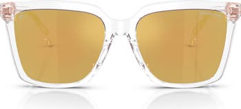 Signature logo hardware highlights the translucent temples of Italian-made sunglasses shaped in a square profile and featuring glare-reducing polarized lenses.