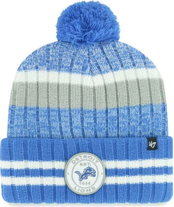 Keep warm while you re cheering for the Detroit Lions with this Quiver Cuffed Knit Hat with Pom from 47.Featuring the team name and logo embroidered on the cuff, this hat allows you to represent the Detroit Lions in cozy style when the temperature falls. The knit striped pattern adds a touch of flair to the classic cuffed design, while the pom on top completes the look with a playful touch.