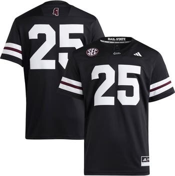 Hail State! Show your unwavering support for the Mississippi State Bulldogs with this #25 Premier Strategy Jersey from adidas. It features tackle twill graphics and heat-sealed fabric appliques, showcasing your fandom in a premium way. Made from 100% recycled polyester, this jersey embodies both team pride and sustainable style, a must-have for any diehard Bulldogs devotee.