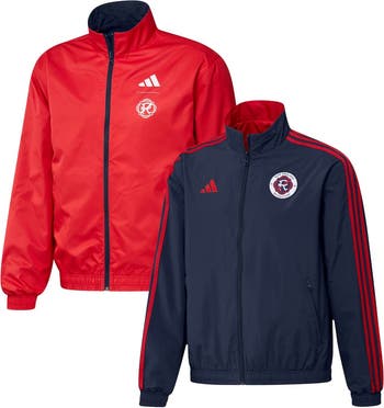 Go above and beyond to put an emphasis on your New England Revolution fandom by sporting this 2023 On-Field Anthem Full-Zip Reversible Team Jacket from adidas. The team s iconic logo on the chest is brought to life by the striking designs of the home and away New England Revolution jersey designs, making it the perfect option for representing your cherished squad. Thanks to the two front zippered pockets, you ll have more than enough room to safely store your keys, tickets and other New England Revolution match day essentials.