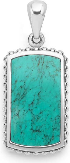 A slab of turquoise fills this sterling silver pendant given a dimensional frame with signature Caviar beading.