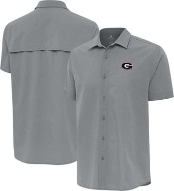 Add a touch of refined Georgia Bulldogs spirit to your game day look with this Antigua Activate Woven Short Sleeve Button-Up Shirt. This button-up shirt is crafted with woven mesh heathered fabric, providing micro-ventilation to keep you cool and comfortable all day long. The embroidered team patch heat-sealed on the left chest makes it clear you re a proud Georgia Bulldogs fan.