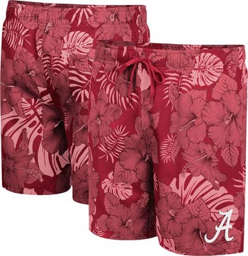 Bring your Alabama Crimson Tide spirit to the beach or poolside with these Colosseum Dude Swim shorts. They feature an adjustable waistband for the perfect, comfy fit, and convenient pockets to hold small items. Also, the lightweight material and interior lining provide a breathable feel. Bold Alabama Crimson Tide embroidery on top of the tropical sublimated design shows that you always carry a piece of fandom with you.