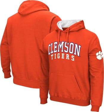 Represent your Clemson Tigers with pride in the Men s Colosseum Orange Clemson Tigers Double Arch Pullover Hoodie. This midweight hoodie is perfect for moderate temperatures, featuring a cozy fleece lining and a front pouch pocket for added comfort. The embroidered fabric applique and graphics proudly display your unwavering support for the Clemson Tigers, making it a must-have for any dedicated fan.