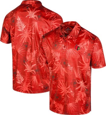 The Men s Colosseum Red Louisville Cardinals Palms Team Polo is a stylish and comfortable choice for any Cardinals fan. Its embroidered fabric applique and sublimated design proudly display your team spirit. The droptail hem with side splits and short sleeves provide a relaxed and comfortable fit. Made from durable polyester, this polo is perfect for showing your support for the Louisville Cardinals both on and off the field.