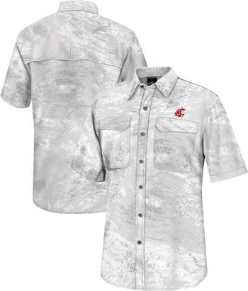 The Men s Colosseum White Washington State Cougars Realtree Aspect Charter Full-Button Fishing Shirt is the perfect way to show your support for the Washington State Cougars. Made from durable polyester, this shirt features rubberized graphics and a mesh lining for breathability. Two chest pockets with hook and loop closures provide ample storage, while the rounded hem and ventilated back panel ensure a comfortable fit. Whether you re fishing, hiking, or cheering on the Cougars, this shirt is a must-have for any fan.
