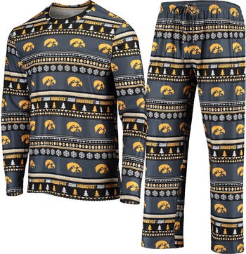 Men s Concepts Sport Black Iowa Hawkeyes Ugly Sweater Long Sleeve T-Shirt and Pants Sleep Set