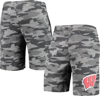 Men s Concepts Sport Charcoal/Gray Wisconsin Badgers Camo Backup Terry Jam Lounge Shorts