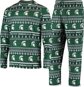 When you re getting ready to watch the Michigan State Spartans play from the comfort of your couch, get cozy in this Concepts Sport Ugly Sweater Knit long sleeve top and pant set. The festive graphics and comfortable design will make this set a must-have for cold months-perfect for sipping on hot cocoa or cheering on the Michigan State Spartans.