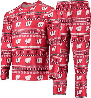 Men s Concepts Sport Red Wisconsin Badgers Ugly Sweater Long Sleeve T-Shirt and Pants Sleep Set