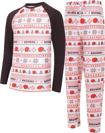 Men s Concepts Sport White/Brown Cleveland Browns Tinsel Raglan Long Sleeve T-Shirt Pants Sleep Set