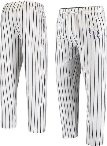 You appreciate a good ensemble as much as anybody, and that shouldn t change just because you re going to relax around the house. These Vigor Pinstripe pants from Concepts Sport allow you to keep showing your Colorado Rockies support at all times, thanks to the crisp graphics. Whether it s game day or just a low-key weekend at home, these pants are a perfect accompaniment every time.