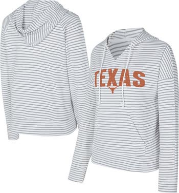 Show your Texas Longhorns pride in cozy comfort with this French Terry Striped V-Neck Pullover Hoodie from Concepts Sport. The dropped shoulders create an oversized, relaxed fit, perfect for lounging or layering on game day. The distressed graphics printed across the chest add a vintage touch, showcasing your Texas Longhorns pride in style.