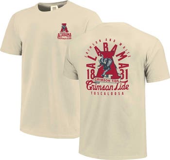 Rep your Alabama Crimson Tide in retro style with this Comfort Colors Mascot Overlay T-Shirt. Made from ultra-soft, pre-washed cotton, it offers a comfy, lived-in feel that s perfect for game day. The vintage team details printed on the front and back add a touch of Alabama Crimson Tide history to your look.