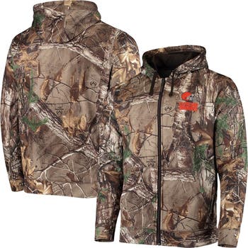 The Men s Dunbrooke Realtree Camo Cleveland Browns Trophy Tech Fleece Full-Zip Hoodie is the ultimate way to show unwavering support for the Cleveland Browns. This midweight hoodie, perfect for moderate temperatures, features a cozy fleece lining and a sublimated pattern showcasing team pride. Embroidered graphics and flatlock stitching add style, while the drawstring hood and two front pockets provide functionality. Whether cheering from the stands or displaying Browns spirit, this hoodie is a must-have for true fans.