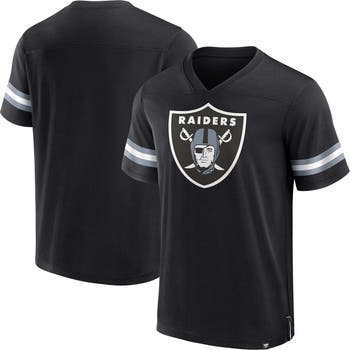The Men s Fanatics Branded Black Las Vegas Raiders Jersey Tackle V-Neck T-Shirt is the perfect way to show your unwavering support for the Las Vegas Raiders. Made from breathable mesh fabric, this T-shirt features heat-sealed graphics that proudly display the Raiders logo and team name. The V-neck design and side splits at the waist hem provide a comfortable and stylish fit, making it ideal for game day or any day you want to show your Raiders pride.