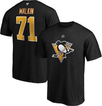 Your die-hard loyalty to the Pittsburgh Penguins is unmatched by anyone. Now you can put your fandom over the top when you get this Evgeni Malkin Pittsburgh Penguins Team Authentic Stack Name and Number T-shirt. This Fanatics Branded tee features distinctive Pittsburgh Penguins graphics on the front and back, perfect for wearing at a home game or around town.