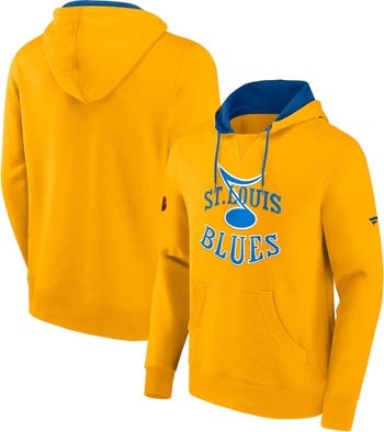 The Men s Fanatics Branded Gold St. Louis Blues Special Edition 2.0 Team Logo Pullover Hoodie is the ultimate way to show your unwavering support for the St. Louis Blues. Crafted from a comfortable cotton and polyester blend, this midweight hoodie is perfect for moderate temperatures. The front pouch pocket provides convenient storage, while the drawstring hood keeps you warm and protected. Long sleeves, rib-knit cuffs, and waistband ensure a snug fit. Screen-printed graphics proudly display the iconic St. Louis Blues logo, making this hoodie a must-have for any true fan.
