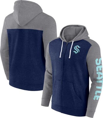 Boost your collection of official Seattle Kraken apparel with this Down and Distance full-zip hoodie from Fanatics Branded. The recognizable team graphics featured on the front are brought to life by the team-colored canvas that it rests on. Thanks to the cotton makeup of this Seattle Kraken top, you ll be able to stay warm and cozy throughout every wear.