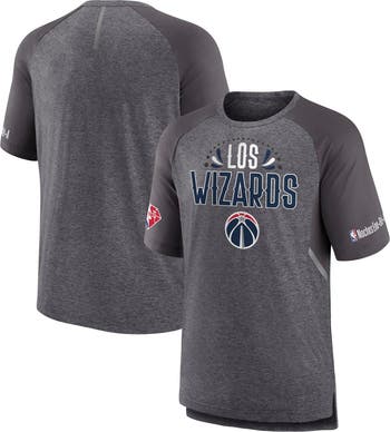 Celebrate your unwavering Washington Wizards fandom with the Men s Fanatics Branded Heathered Gray Washington Wizards 2022 Noches Ene-Be-A Core Shooting Raglan T-Shirt. This stylish tee features a space-dye pattern and reflective design, making it a standout piece for any Washington Wizards fan. The mesh panels and raglan sleeves provide breathability and comfort, while the heat-sealed graphics proudly display your team spirit. Whether you re cheering from the stands or simply showing your support, this t-shirt is the perfect way to represent the Washington Wizards in style.