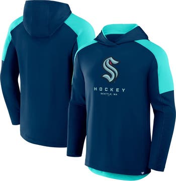 Sport Seattle Kraken colors proudly with this Meta Game Transitional Pullover Hoodie by Fanatics. Its two-tone design features stretch jersey fabric and micro polyester for a flexible, lightweight feel. The rounded droptail hem gives this Seattle Kraken hoodie a more comfortable fit.