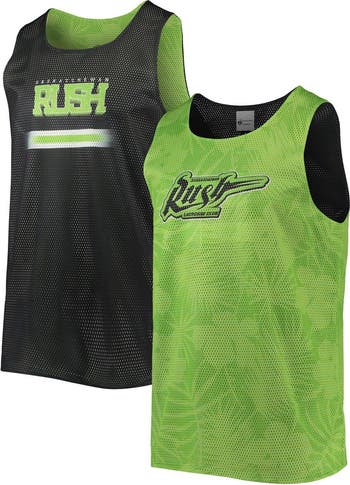 The Men s FOCO Green/Black Saskatchewan Rush Reversible Mesh Tank Top is the perfect way to show your support for the Saskatchewan Rush. This reversible tank top features sublimated graphics of the Saskatchewan Rush logo on one side and a solid black design on the other. The scoop neck and mesh fabric make this tank top comfortable and breathable, perfect for cheering on the Rush at the game or relaxing at home.